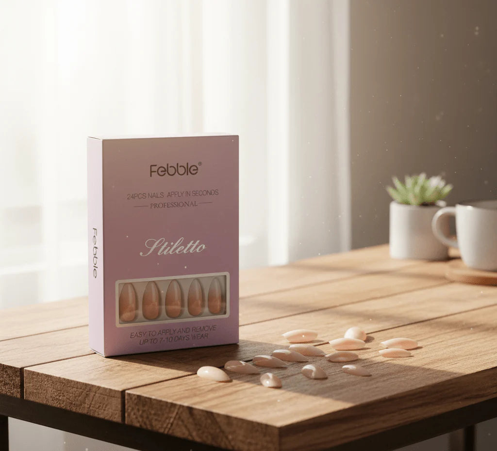 Get a sleek, modern, and salon-like manicure instantly with the Febble® Nude Stiletto Press-On Nails. These long, pointed stiletto nails offer a bold and stylish look with a smooth nude finish—perfect for parties, events, photoshoots, or everyday glam. Apply in seconds and enjoy long-lasting wear for up to 7–10 days.