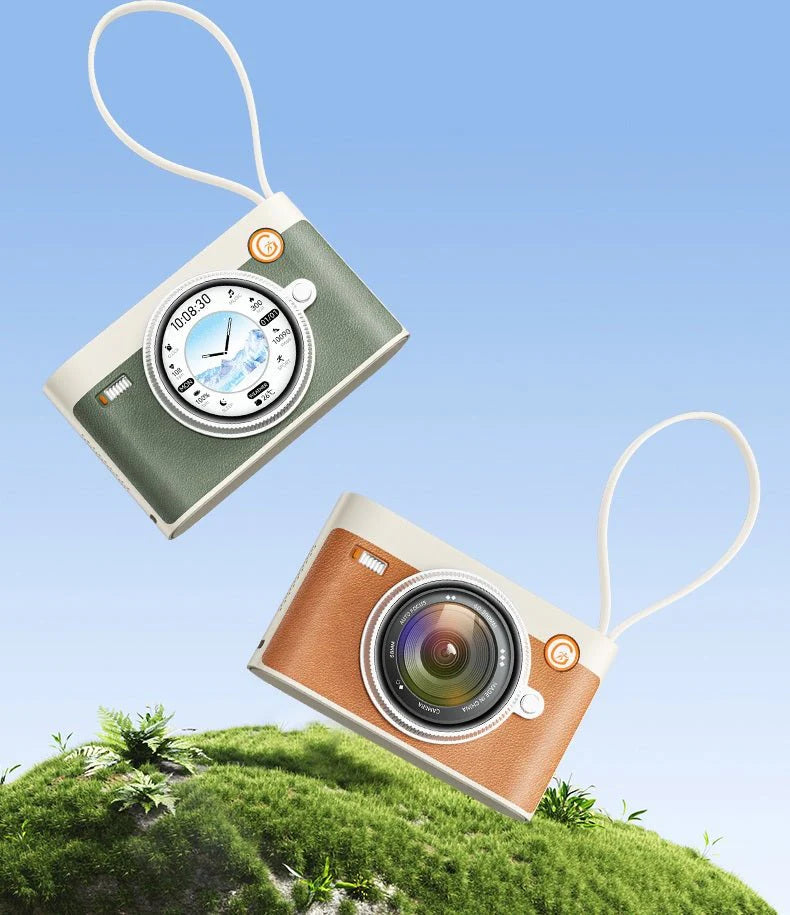 The GS Wear Smart Treasure M3 is a 3-in-1 multifunctional gadget that combines a smart wearable, audio system, and power bank. Designed with a stylish retro-camera look, it features a 1.53-inch HD curved circular screen, powerful 10,000 mAh battery with 22.5W super-fast charging, and built-in smart features for convenience. Perfect for those who want a trendy, multipurpose portable device.